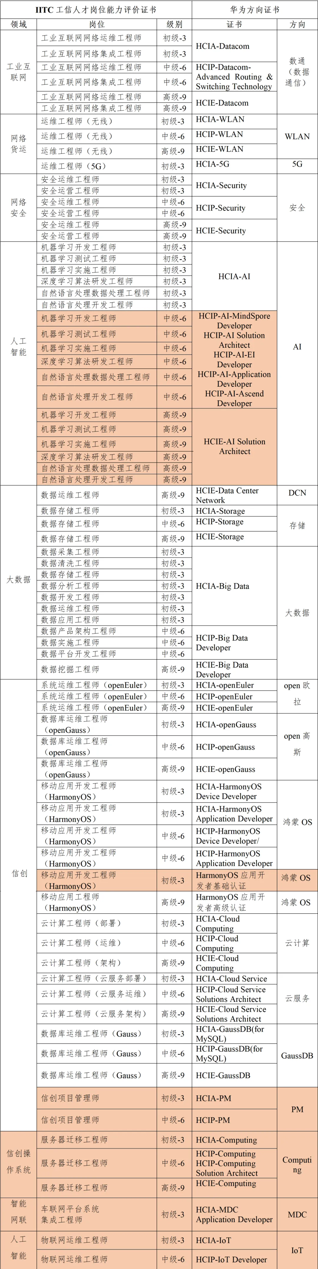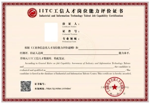 通过华为认证考试,如HCIA、HCIP、HCIE的学员即可申领,免考获得工业和信息化部人才交流中心颁发的IITC工信人才岗位能力评价证书。